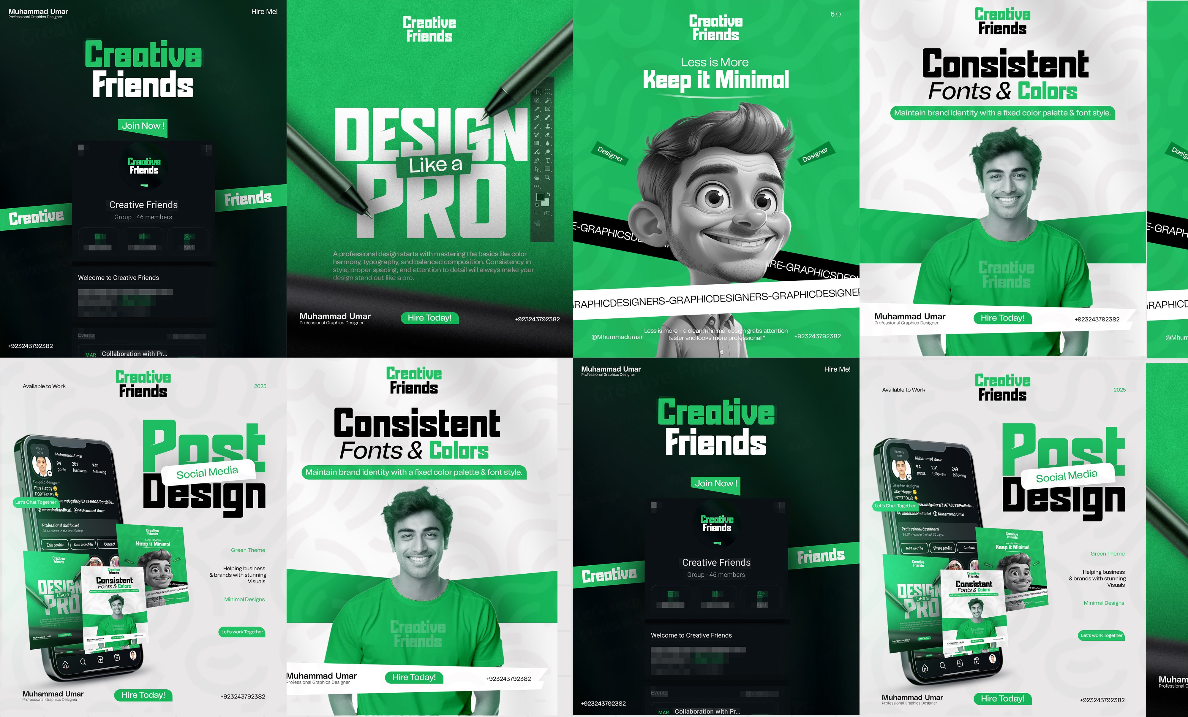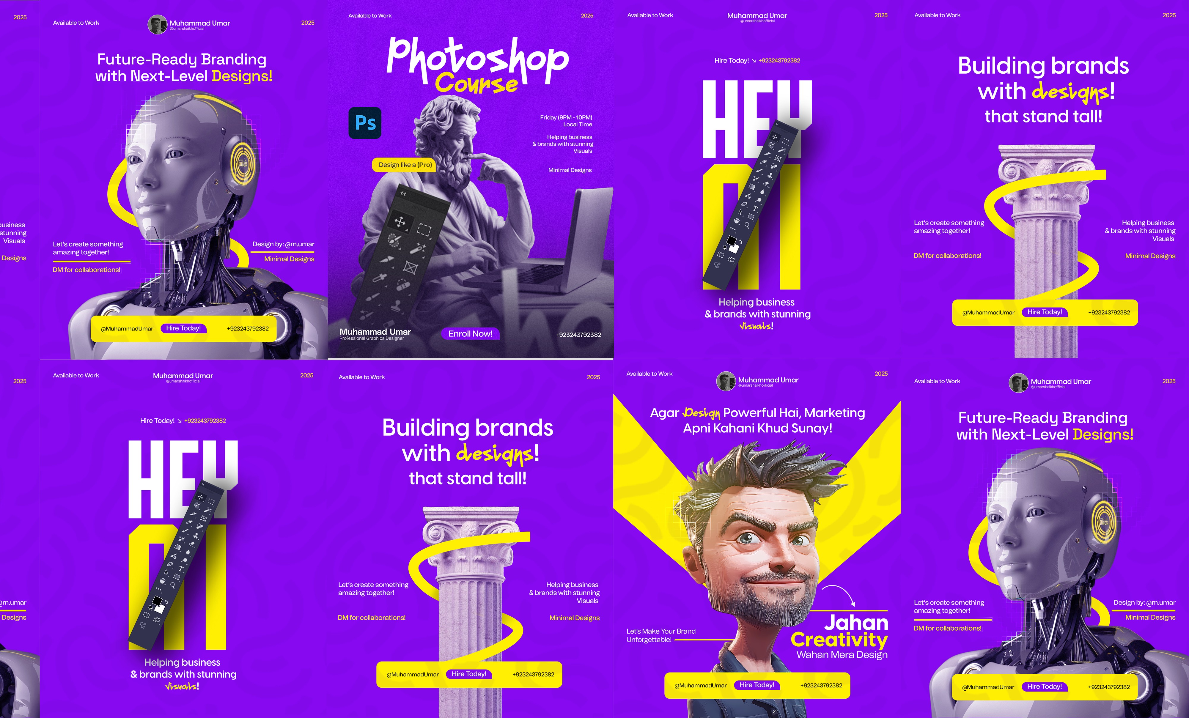 This project focused on designing a modern, bold, and visually engaging set of social media creatives that not only grab attention but also elevate the client’s online presence. The objective was to create scroll-stopping content that reflects the brand’s identity and connects effectively with the target audience.